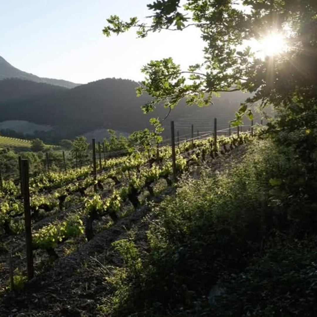 In contrast to the vines being baked on the plains of stones at the foot of the hill, the Bouissiere vines benefit from cooling air at night falling from the high peaks, and the wines retain a freshness and subtle persistence which is very different to the sometimes bludgeoning broadness and alcoholic heat of the wines on the plain.