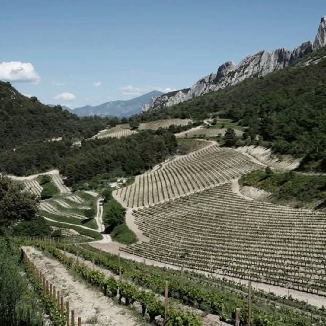 Thierry and Gilles Faravel's Domaine la Bouissiere in Gigondas is exceptional in many ways, but perhaps apart from the personality of Thierry himself, it is the site of the vineyard, high up under the 'Dentelles de Montmirail' which makes the defining difference.